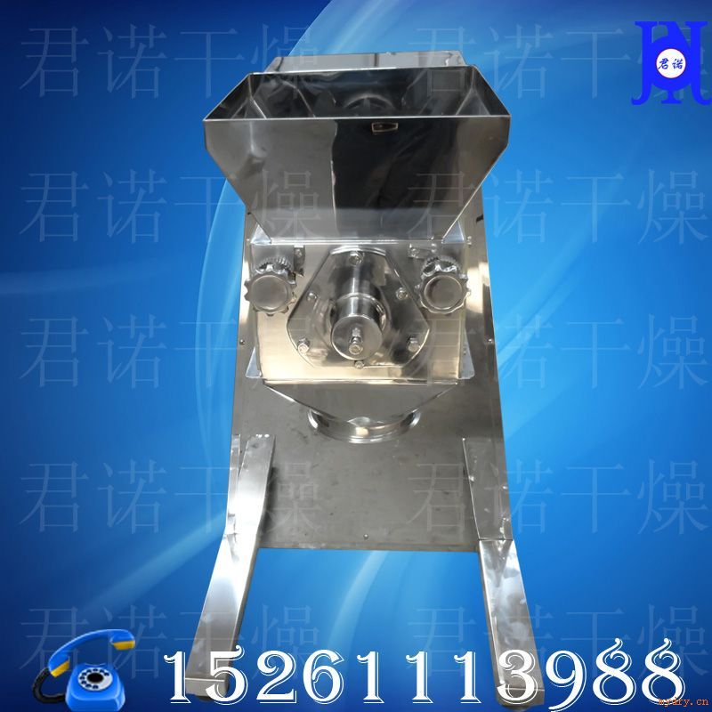 本機是一種將潮濕粉末混合物,在旋轉滾筒的正、反旋轉作用下,強制性通過篩網而制成顆粒的專用設備。君諾干燥目前生產普通型和加重型兩種,加重型適用粘度高,造粒困難的物料。將攪拌好的物料制成所需尺寸的顆粒,或將結塊狀物料打成小顆粒 該機亦可用于粉碎凝結成塊狀的干料。