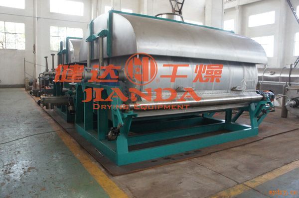 滾筒刮板干燥機(jī)是一種內(nèi)加熱傳導(dǎo)型轉(zhuǎn)動(dòng)干燥設(shè)備,濕物料在滾筒外壁上獲得以導(dǎo)熱方式傳遞的熱量,脫除水分,達(dá)到所要求的濕水含量.熱量由筒內(nèi)壁傳到筒外壁,再穿過料膜,其熱效率高,可連續(xù)操作,故廣泛應(yīng)用于液態(tài)物料或帶狀物料的干燥,對(duì)膏狀和粘稠物料更適用。