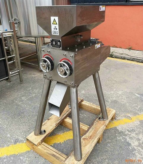 一.啤酒麥芽粉碎小常識: 粉碎時要求麥芽皮殼破而不碎,胚乳適當(dāng)?shù)募?xì),并注意提高粗細(xì)粉粒的均勻度。由于麥皮中含有苦味物質(zhì),色素,單寧等有害物質(zhì),粉碎過細(xì)還會使啤酒色澤增加,口味變差。也會影響麥汁收得率,因此在麥芽粉碎時應(yīng)盡可能使表皮不被破碎。 二.JMF系列啤酒麥芽粉碎機,麥芽對輥粉碎機特點: 1.JMF系列粉碎機采用我司的鑄鐵合金輥,此磨輥由我司定制生產(chǎn),槽型棍齒粉碎后的大麥芽含粉量低,在麥殼破而不碎的前提下胚乳得細(xì)磨。 2.JMF系列麥芽粉碎機采用機械裝置控制磨輥間距,該機械裝置可以實現(xiàn)無級調(diào)節(jié),保障啤酒釀造所需麥芽的粗中細(xì)比 3.JMF系列麥芽粉碎機采用我司的新型復(fù)合齒輪傳動技術(shù)。該復(fù)合齒輪具有自潤滑功能,不需要給齒輪加潤滑油,噪音小,抗沖擊耐磨性更好。 4.JMF系列麥芽粉碎機根據(jù)不同型號機器的產(chǎn)量,對料斗進行容量設(shè)計。 5.采用U型電機減震底座,保障機器運行更平穩(wěn),噪音更小 三.JMF系列啤酒麥芽粉碎機,麥芽對輥粉碎機技術(shù)參數(shù)如下: