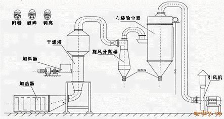 除塵器的配套: 根據物料的特點,可選用脈沖布袋除塵器或濕式噴淋除塵器作二級除塵設備。 加熱方式: 根據廠家具備的條件及物料所能承受溫度考慮選擇使用蒸氣、電或熱風爐加熱作熱源。 典型干燥物料: 氧化鐵紅、氧化鐵黃、氧化鐵黑、發酵粉、硅藻土、鈦白粉、淀粉、硫化鐵棕、碳酸鈣、亞硝酸鈉、腐植酸、硫酸鋇、碳酸鋁、 猩紅酸、中藥浸膏、混凝土減水劑、馬鈴薯漿 。